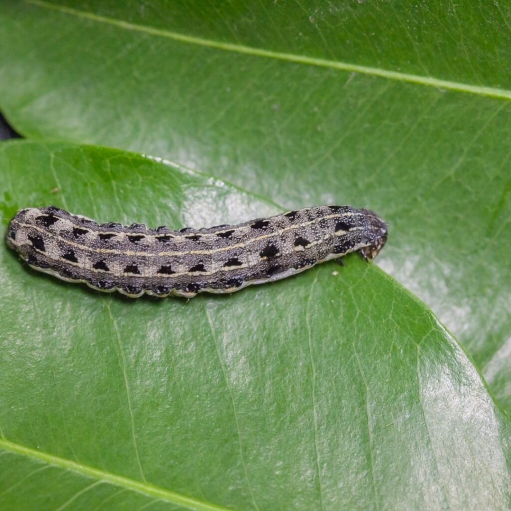 These are night-feeding caterpillars that chew through young plant stems at or just below the soil surface.