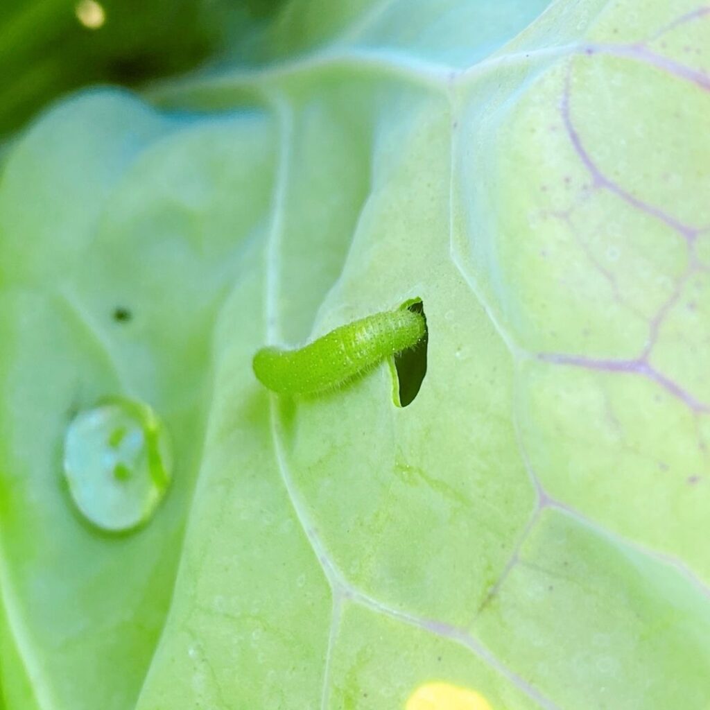 Green caterpillars that chew large holes in cabbage, broccoli, kale, and related crops.